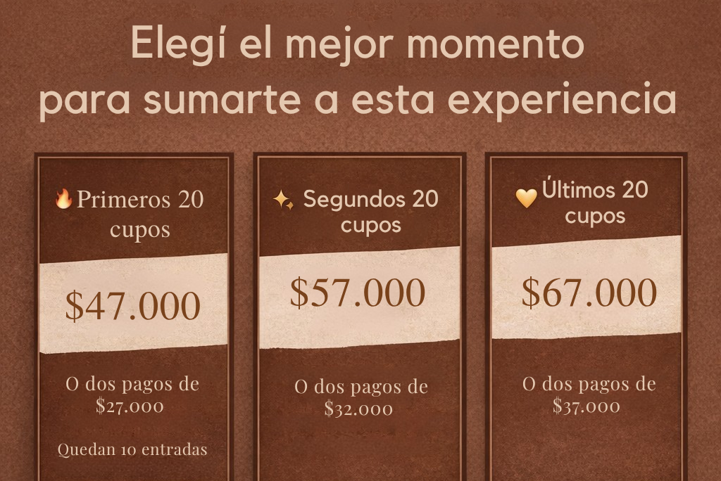 Los cupos son reducidos porque buscamos que sea una experiencia cercana y de calidad.